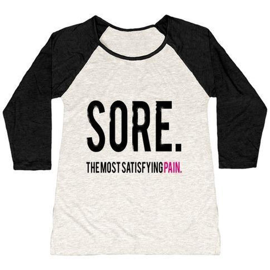 SORE. the MOST SATISFYING PAIN. WOMEN'S TRI-BLEND BASEBALL TEE